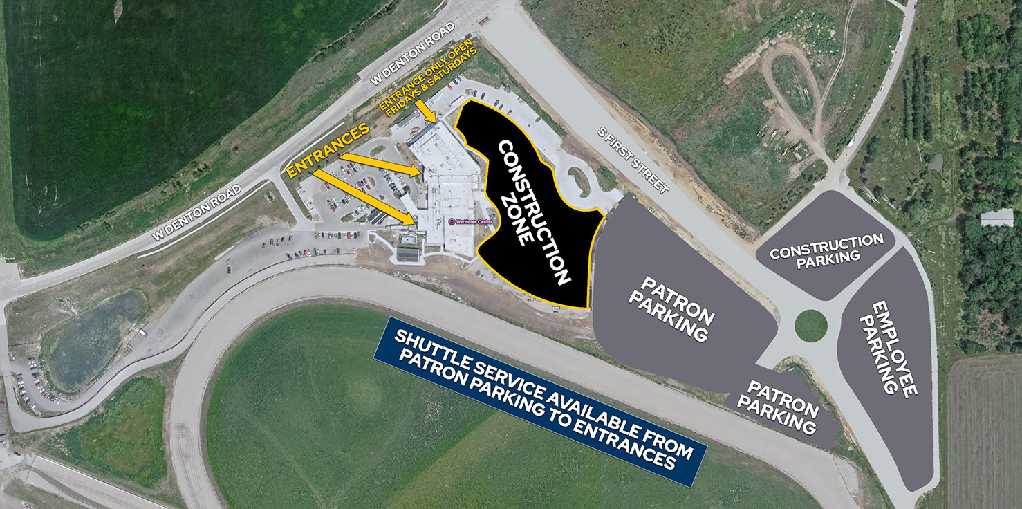 Construction will take place in the large, southeast parking lot and will change where guests enter the facility. Guests will be able to access the casino through two entrances on the west side, and one entrance exclusively for Fridays and Saturdays on the north side facing Denton Road through the end of summer 2027.